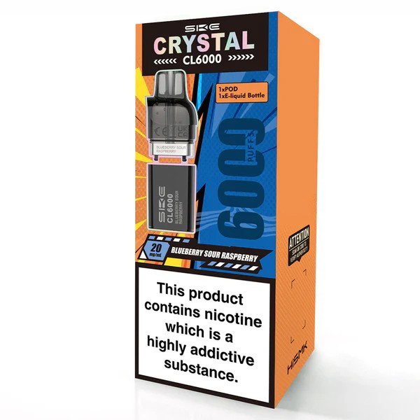 The SKE Crystal CL6000 prefilled pods are designed to be used with the SKE CL6000. Included is a 2ml prefilled pod along with a 10ml refill container which together deliver up to 6000 puffs when paired with your device. Each inhale produces a discreet amount of vapour for an MTL (Mouth To Lung) inhale, which mimics the feel of a cigarette.