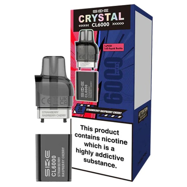 The Strawberry Raspberry Cherry SKE Crystal CL6000 prefilled pods layers the summery taste of strawberry with tart notes of cherry and raspberry. This berry fusion is sharp but sweet.