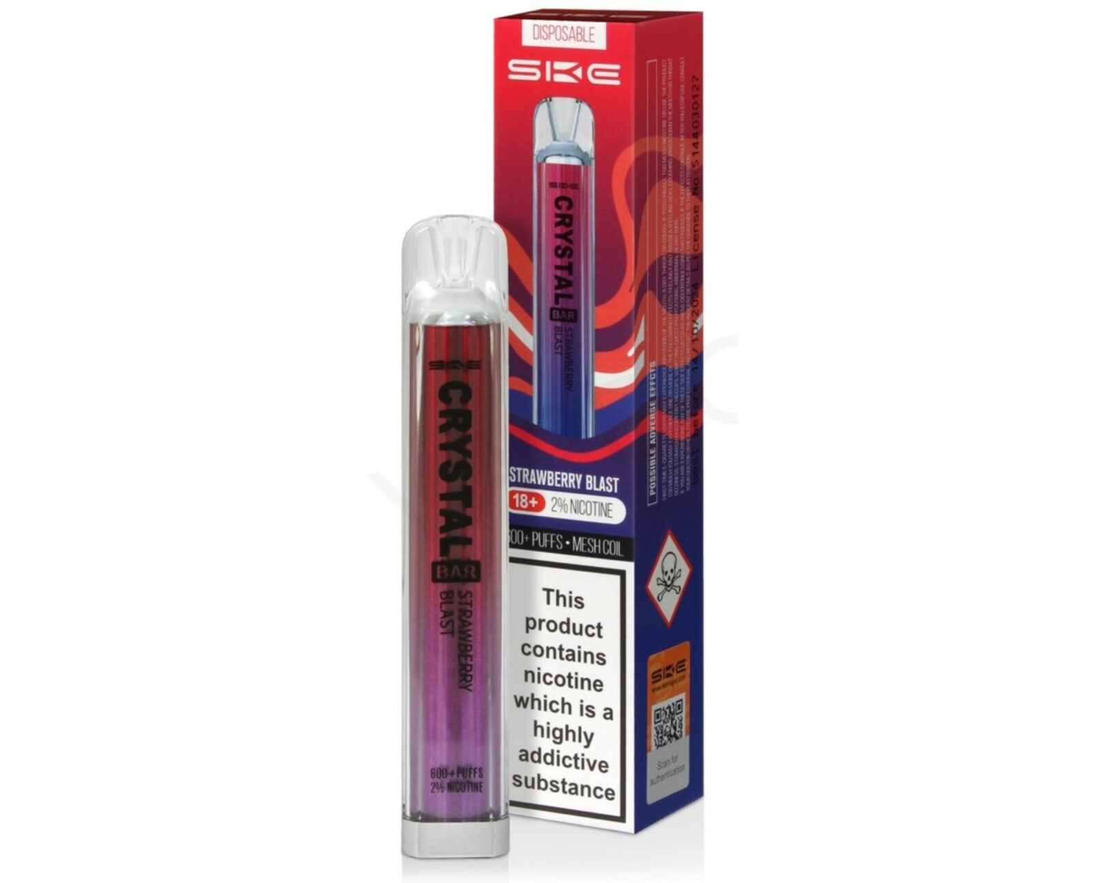 The Strawberry Blast SKE Crystal Bar disposable vape will easily fit into your pocket thanks to its lightweight build and small size, meaning you can take it with you wherever you go. There’s no need to worry about maintenance, because it’s designed to be replaced with a new one when the e-liquid inside is finished. Each SKE Crystal Bar device is prefilled with 2ml of e-liquid, which delivers up to 600 puffs and can outlast 20 cigarettes.